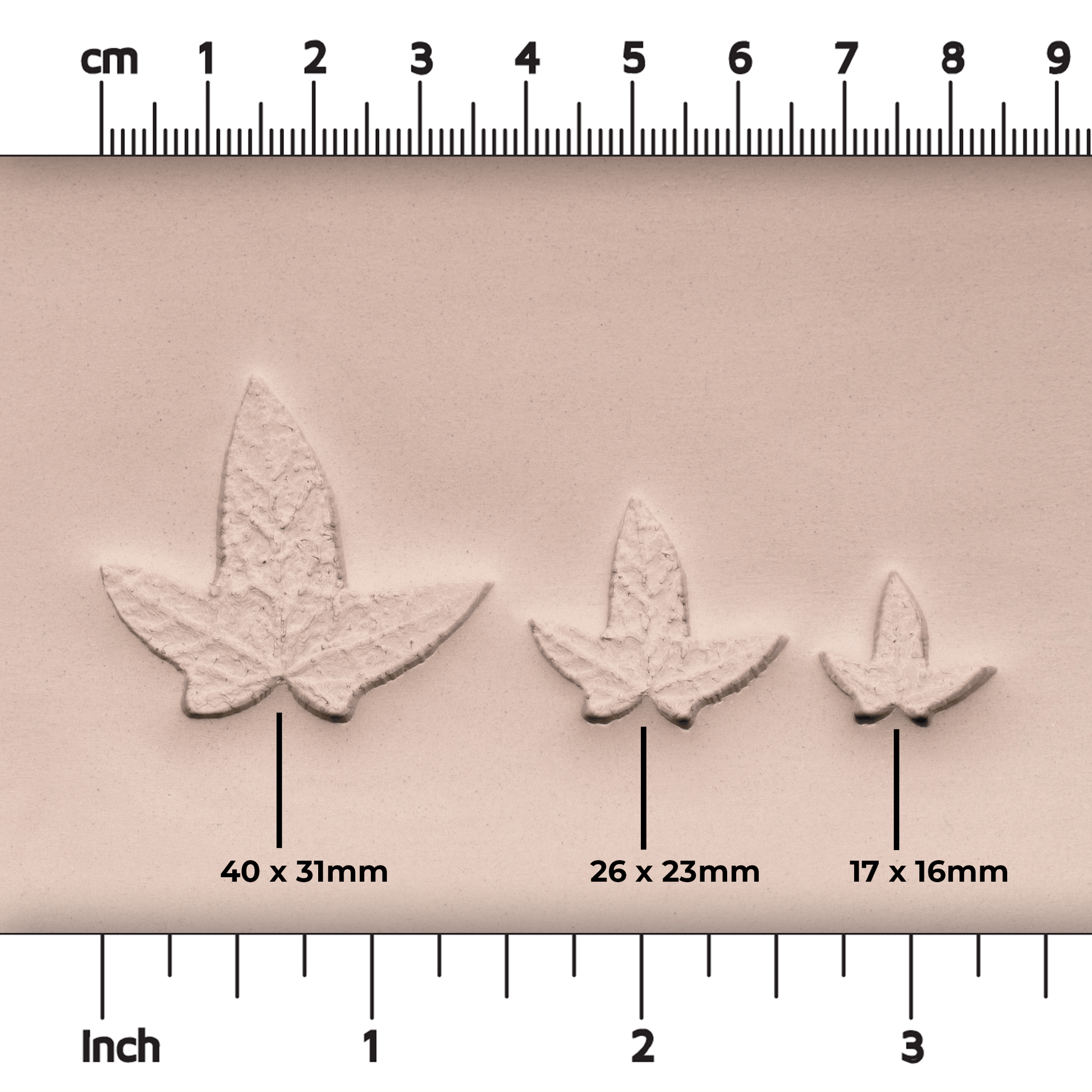This is an ivy leaf stamp available in three sizes that is perfect to use on any dish or piece that you are creating that you want to have a botanical or plant theme.